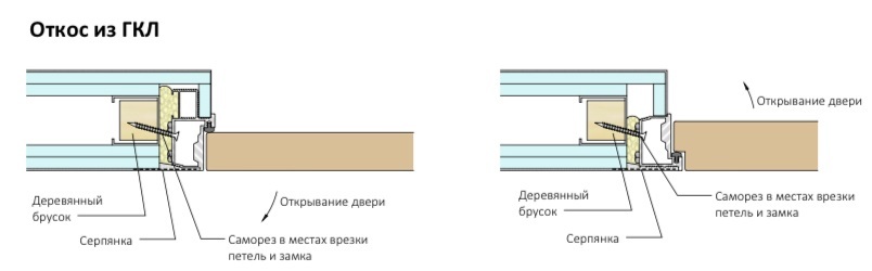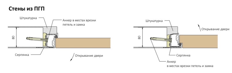 Чтобы стена выдержала нагрузку дверной конструкции, важна её жёсткость. Рекомендуем обшивать стены гипсокартонными листами (ГКЛ) толщиной по 12,5 мм в два слоя с каждой стороны. Внутрь стоечного профиля необходимо поставить деревянный брусок (рис.1).